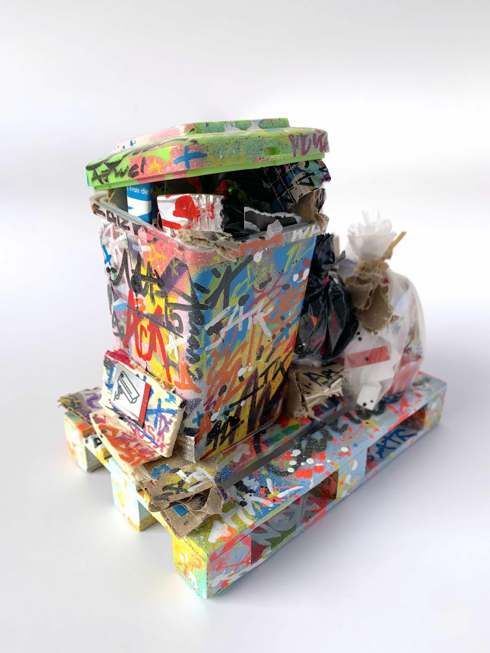 Scène de rue à l’échelle 1/50ème. Graffiti & tag sur mini poubelle